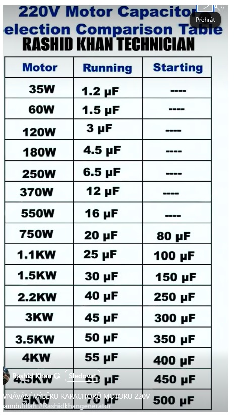 Není napsaná potřebná kapacita kondenzátoru na motoru?