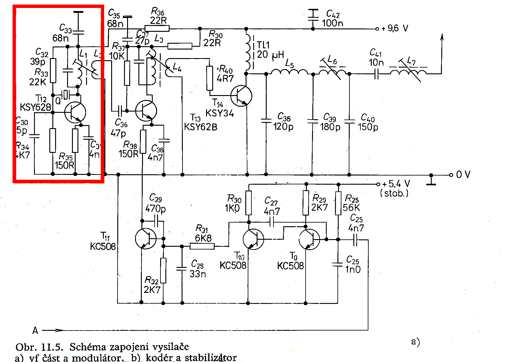 Tohle zapojení oscilátoru bylo snad ve všech AM RC vysílačích stejný a chodilo vždy na první šlápnutí.