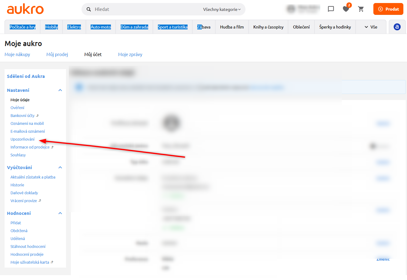 Nastavení upozornění máš na obrázku. V záložce Můj účet.