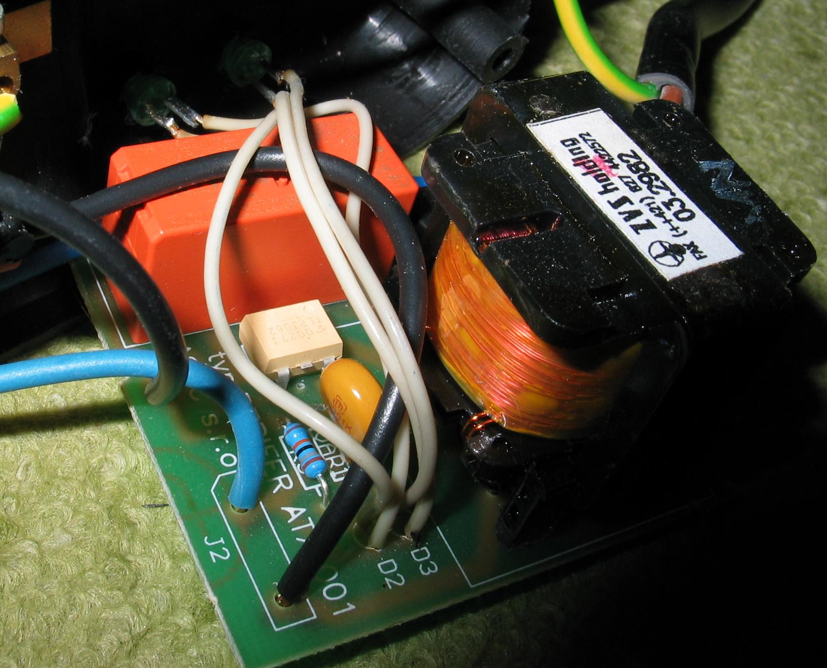 Spina to pri 30W (podla wattmetra) - 12V zdroj so zatazou 2,1A (dava pri tomto prude 12,25V). Vtedy je na elyte 2,32V. Na 360Ω odpore je 1,21V a teda prud do optotriaku 3mA.