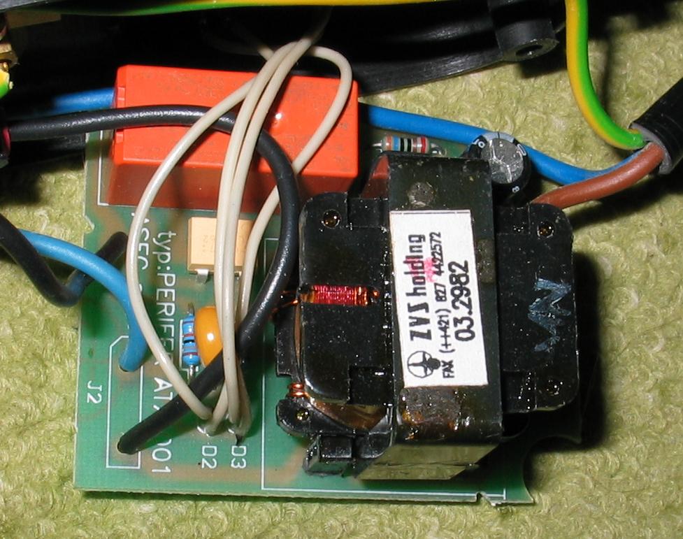 Zapojenie je zaujimave - master zasuvka je pripojena cez primar trafa. Na sekundari je usmernovac, elyt 100uF, zenerka (asi 5V1) a cez odpor 360Ω to ide do optotriaku TLP3062. Ten spina cievku (230V) rele RT214730. To je vsetko - inak su tam uz len LED s odpormi a varistor.