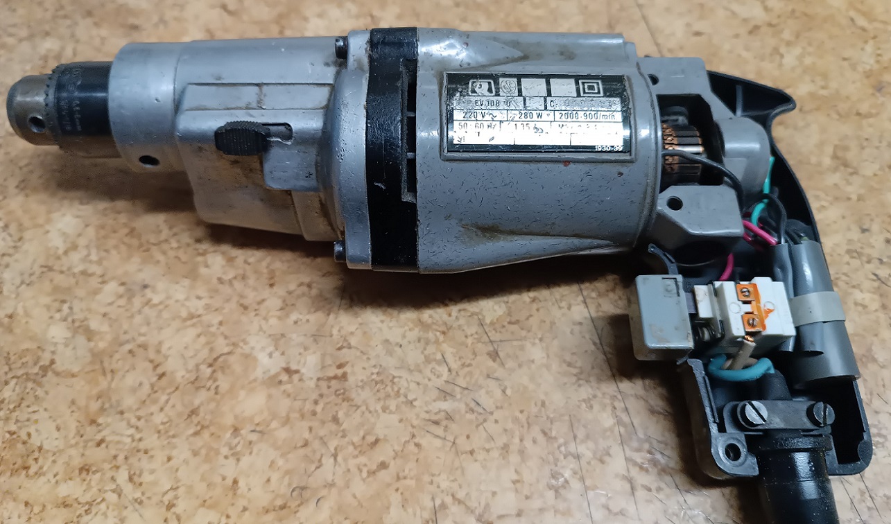 Tuhle vrtačku jsem kupoval jako součást sady Kombi v roce 1977. Byl k tomu nasazovací maflík, prostřihovadlo na plech, podkovový nůžky na plech, soustruh na dřevo/vrtací stojan. A celý to bylo dost těžká podpultovka.
