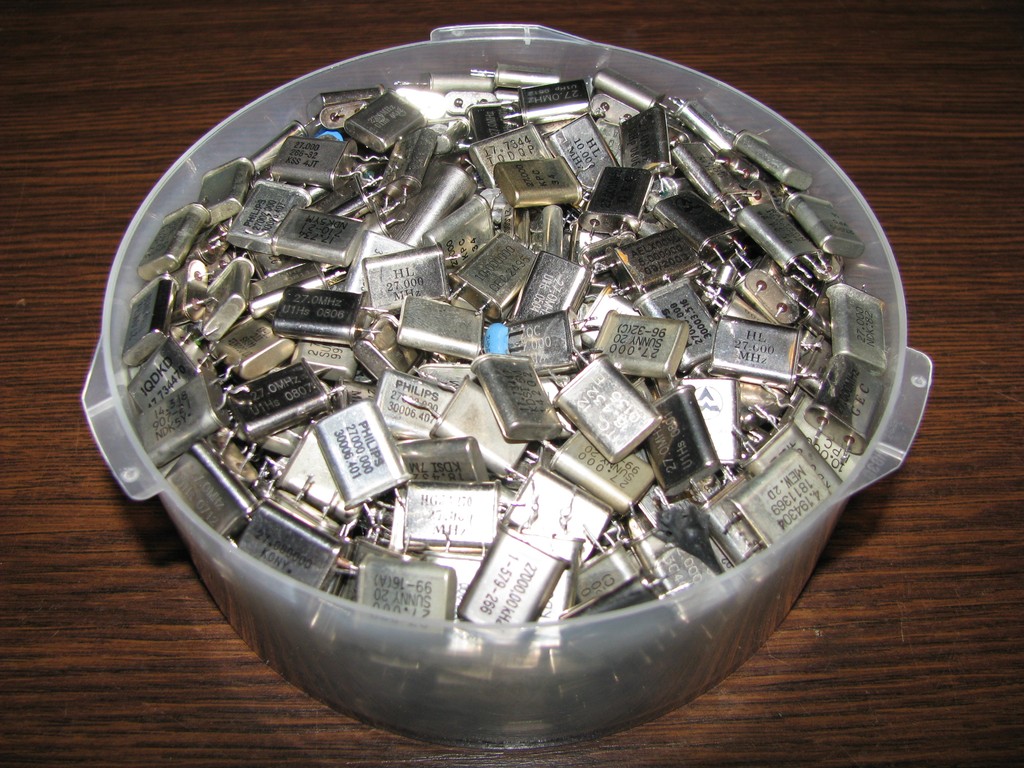 Jsem nekuřák, proto používám MARSky. Very Happy Z kapacitních důvodů jsem začal (ač nelyžuju) dávat součástky i do "špindlů" (viz foto č. 1&2), původně určených pro 25/50ks médií. Víko se vyrobí ze základny odříznutím čepu a jeho konec poslouží pro zaslepení vzniklého otvoru ve víku. Na ilustračním foto je válec s cca šesti sty krystalůch (váha ukázala 624g netto). K trimrům netřeba komentáře.