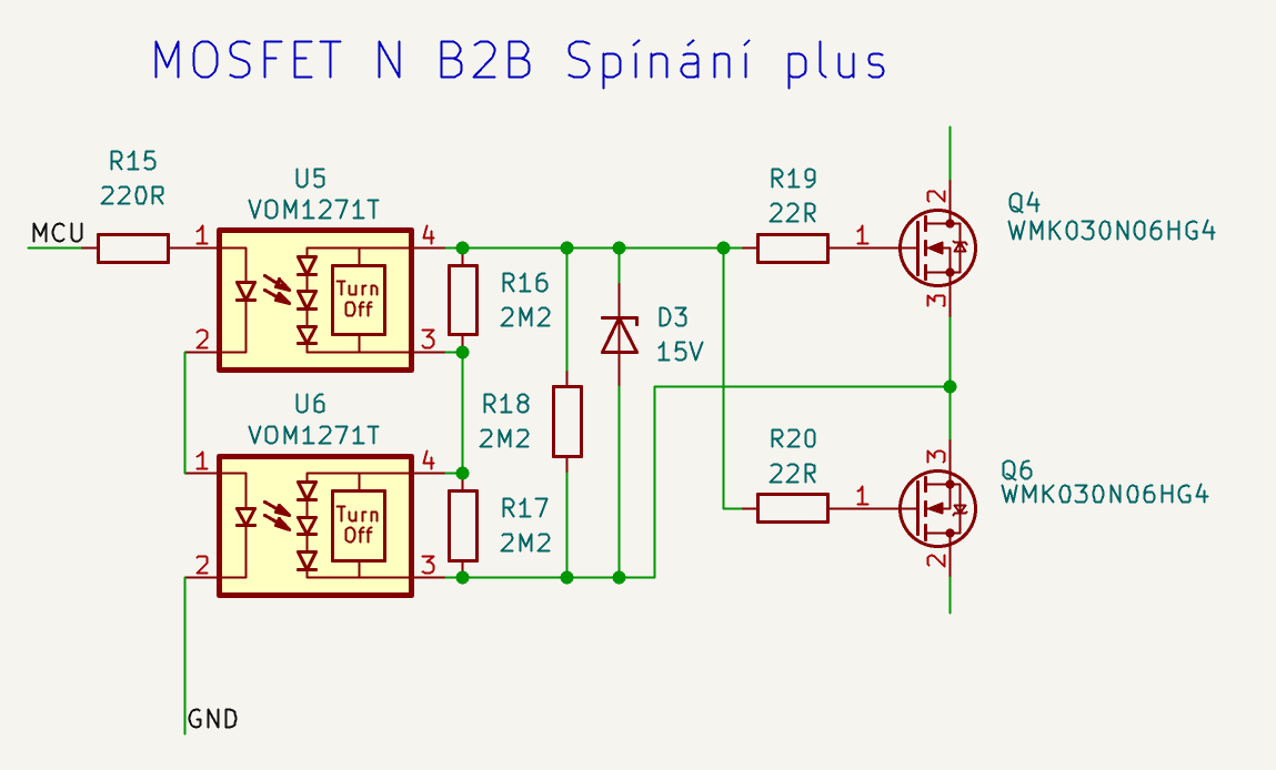 Ahoj, toto je spínání pro části, které poběží většinu času, proto snaha o maximální otevření mosfetů.Ty Megové odpory nemám, tak je to zatím jen teorie. Co vy na to?