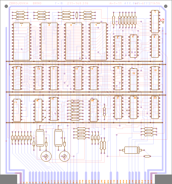 Tak teraz neviem, či zbrojovka, alebo RFT. A stále som sa nedozvedel, čo je to za formát zásuvných kariet. Gúgeľ pozná len Eurocard, PCI a ISA. O rozmere 14 x 15 cm ani zmienka. A pritom mám tie karty z rôznych zariadení, takže to akýsi štandard musel byť.