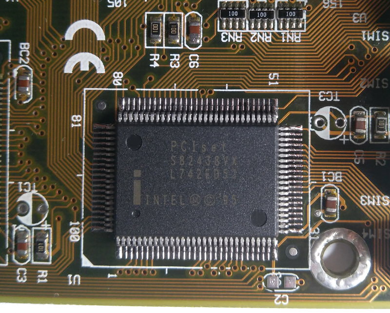 EDIT: tak pruser, zistil sem, ze je slehunta linka D29 na databufferu S82438VX proti REFVCC5, tam musel nekdo prasit se SIMMkama. Bohuzel nahradni cip nemam. Neco podobneho je VT82C587VP, ale neni pinove ani funkcne kompatabilni.
