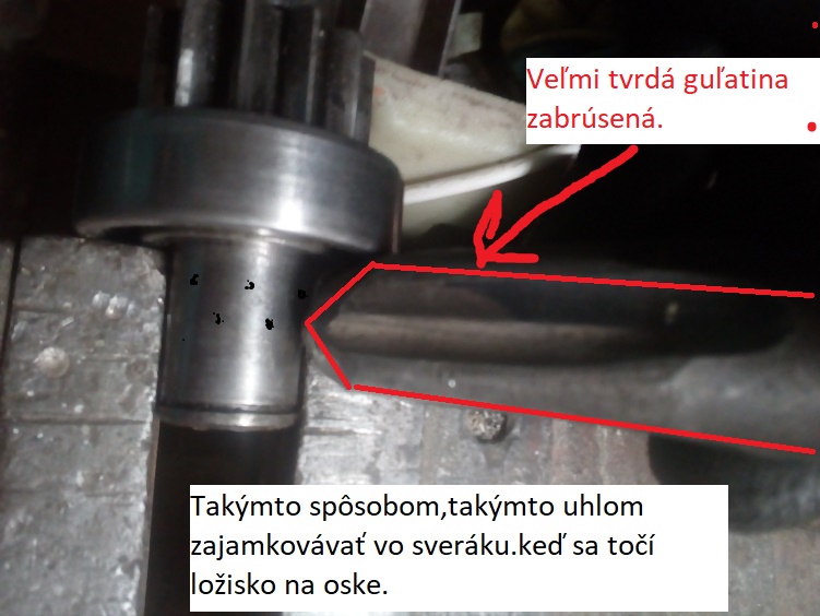 Takto upravujem a nelepím roky ložiská narýchlo,ked sa tocia na oske alebo v puzdre.To naprskanie musi byt jemne,vacsie hrbole zbrusit na stejnu hrubku.Taktiez na oske sa to da takto dostatocne zajamkovat hrubym priebojnikom,nie tenkym!!!Samoze spic tupy uhol.