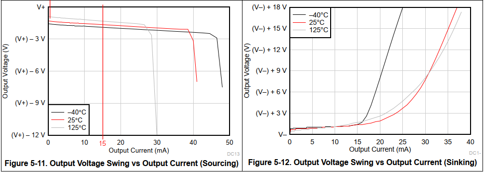 Za úbytkem proudu, na který si TAKJAN stěžuje, může úbytek napětí v obou saturačních stavech. Je to jasně vidět na grafech z datasheetu LM358, které přikládám. Snížení napětí je součtem 1.5V z prvního grafu a cca 1.3V z druhého grafu, t.j. 2.8V plus ještě úbytek na jedné diodě cca 0.6÷0.7V, takže místo 12V (pro které zřejmě platí proud 15mA) máme rázem jen 8.5V, takže i proud bude menší (záleží na vnitřních obvodech v SSR, jehož typ nám autor tvrdošíjně tají). Jak to řešit, pokud je to nutné, jsem uvedl v dřívějším příspěvku.