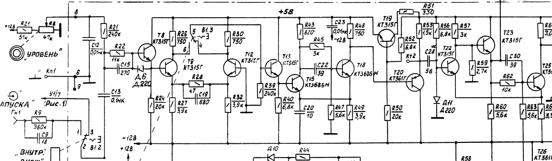 Schema synchronizační části je obsáhlé. Je třeba zkontrolovat cestu signálu od T8 po T25. Nejprve zkontroluj napájení +5V pro vstupní část.