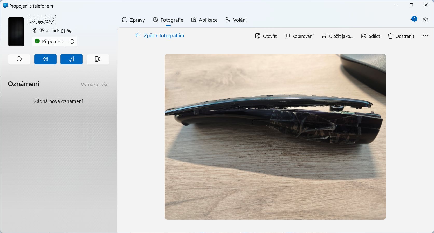 Ve Win11 je bezdrátové propojení s telefonem funkční na úrovni fotek, zpráv, volání atd.