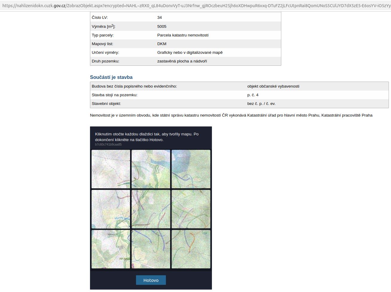 Tak jsem se zase podíval na katastrofální mapy, je tam captcha, srovnávají se dílky mapy. Včera se mi to nepovedlo, dnes snad ano, ale když se mi to snad podařilo srovnat, objevilo se hlášení "Captcha vypršela".
