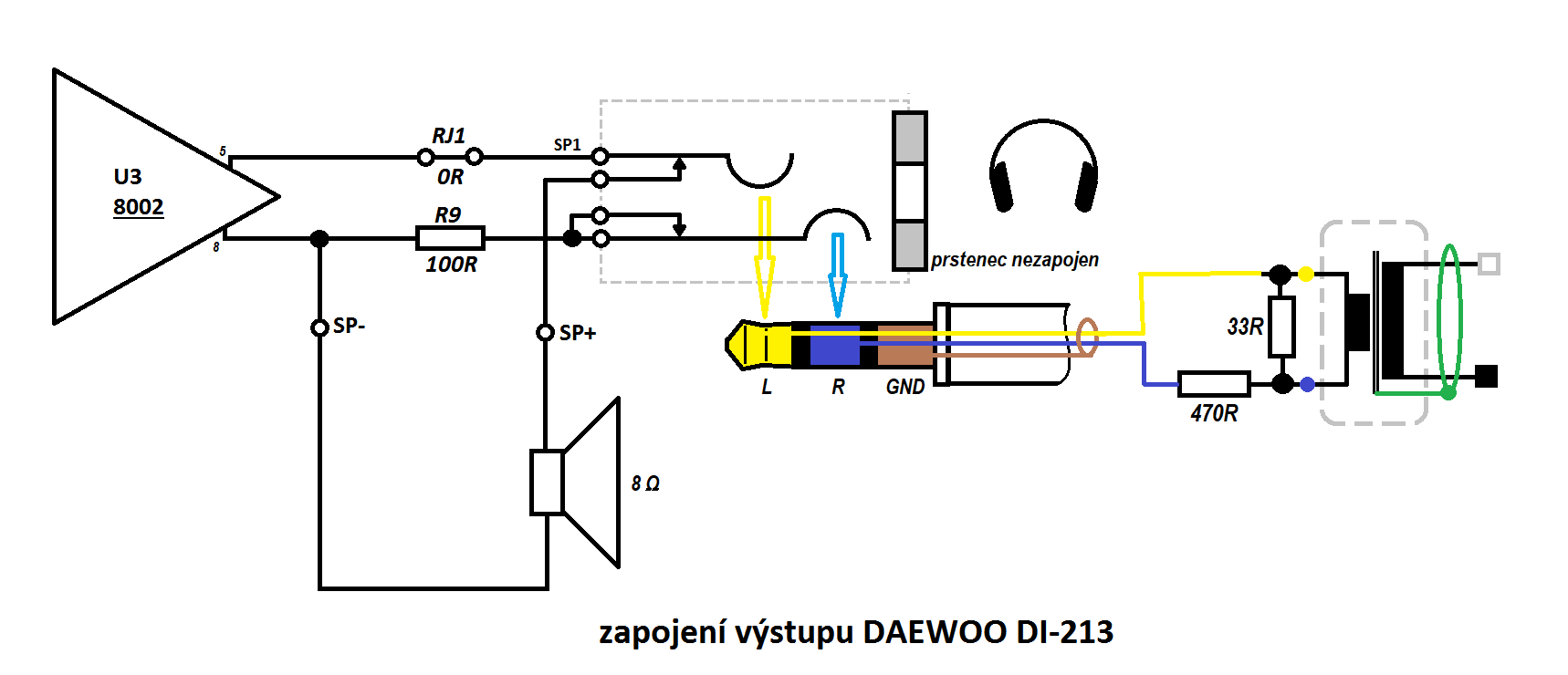 Takto to funguje a je jedno, že oba výstupy (SP+ i SP-) mají stejnosměrný potenciál proti kostře.