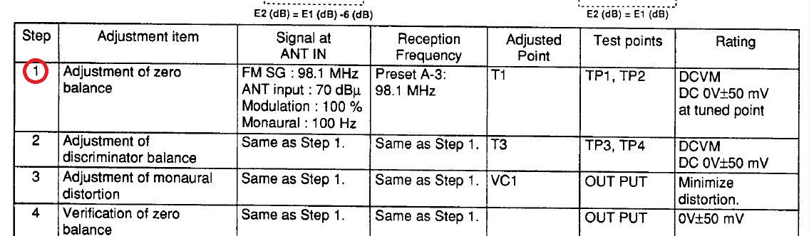 VT: FM Tuning Voltage 87.5MHz 5.1V 108.0MHz 20.9V