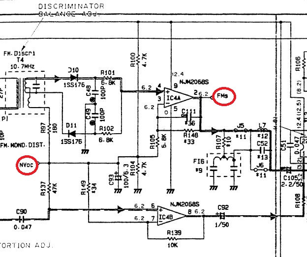 No on zřejmě někdo kroutil úplně se vším co šlo, pracky urazit u samé zadele. Takže jsem prohlédl SM, poladil IFT výstupní MF trafo a dostal jsem na výstupu cca 20mV šš 10,7MHz mf signál, který už filtrem projde. Teď mám před IC4 LA1266 cca 200mV šš (při volbě WIDE i NARROW), při této úrovni MF kmitočtu je na výstupu nf signál cca 20mV šš. Takže pokračování příště.