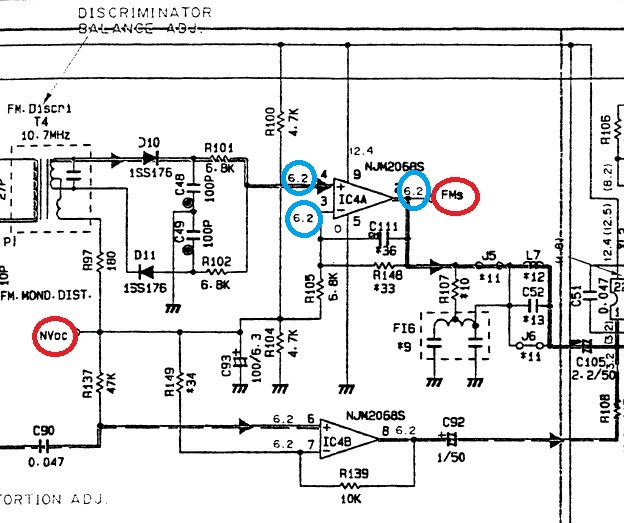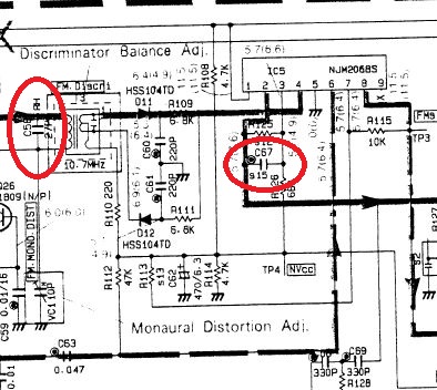 Teď jsem to vyzkoušel a chtěl napsat, jsi rychlejší. Při bližším zkoumání datashitu LA 1266 je vidět, že výstup 12 (v tuneru nezapojený) je nf signál. Takže jsem opět uštípl C58, vzal kousek drátu a kondenzátor co mi přišel do ruky (asi 15nF) a připojil ho do společného bodu R109 R111. A vida, na cinchi je cca 1,5V šš nf signál. Teď se vydám hledat, jaký je rozdíl mezi kvadratickým detektorem a koincidenčním demodulátorem. Esli vůbec něco najdu, jak už jsem víckrát uvedl, dobře položená otázka je poloviční odpověď.