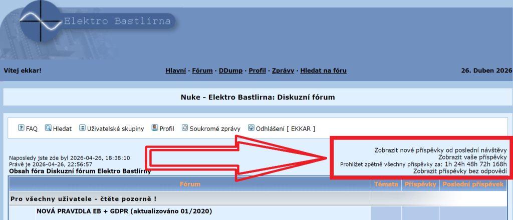 Moje záložka v Opeře směřující sem na Bastlírnu například není na titulku fóra ani na Obsah, ale rovnou na "Příspěvky od vaší poslední návštěvy", i když se mi to občas potká s mým připojením přes mobil a na kompu mi blikne "Žádný příspěvek nebyl nalezen podle vašich kritérií". to pak musím potupně na Obsah a zvolit "Příspěvky za posledních 24 hodin", protože hodina je většinou moc krátká doba.