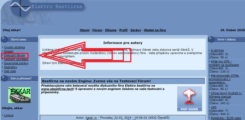 A to jseš tady regnutej skoro 10 let. To totiž není žádný Hledání, to je jen přehled novinek - a ty si vybereš, jestli chceš jen tyhle, nebo jen tamty. Stačí se podívat na titulní (hlavní) stranu fóra - hned nalevo třetí shora je klikací odkaz "Diskusní fórum" - viz obrázek "Hlavní strana". Když na ten odkaz klikneš, přesuneš se na stránku "Obsah diskusního fóra" (viz stejnojmennej obrázek) - a tam už máš napravo na výběr, kam se posuneš, jestli budeš jen rolovat obsahem, nebo zvolíš nějakej časovej interval, ze kterýho chceš vidět příspěvky.