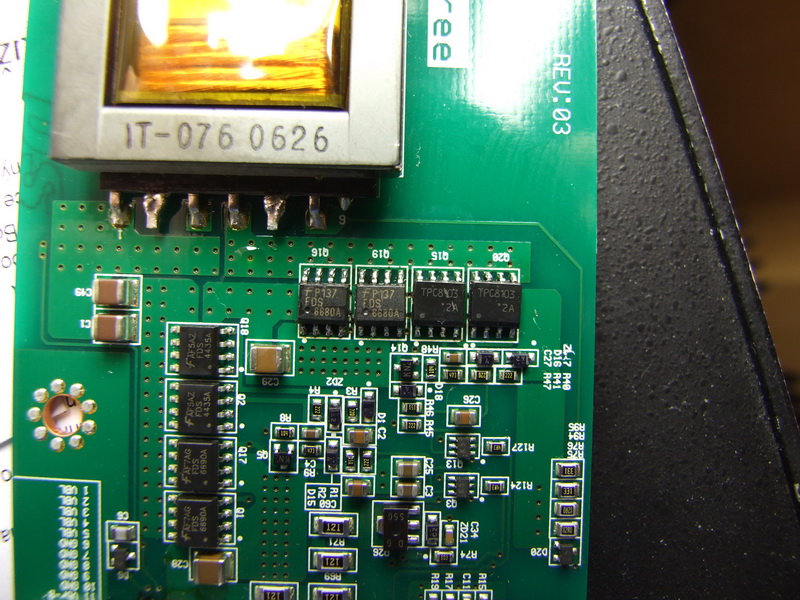 Ty z ty TV deláš neustále něco šíleně starýho, přitom jí jsou jen 2 roky Laughing Myslim že by to natřelo prdel i některejm dnešním LCD TV. Přikládám fotky panelu a pak DPS měniče se záběrem na 4 vyměněný mosfety (ty co jsou vodorovně, myslim že to je i vidět) Wink