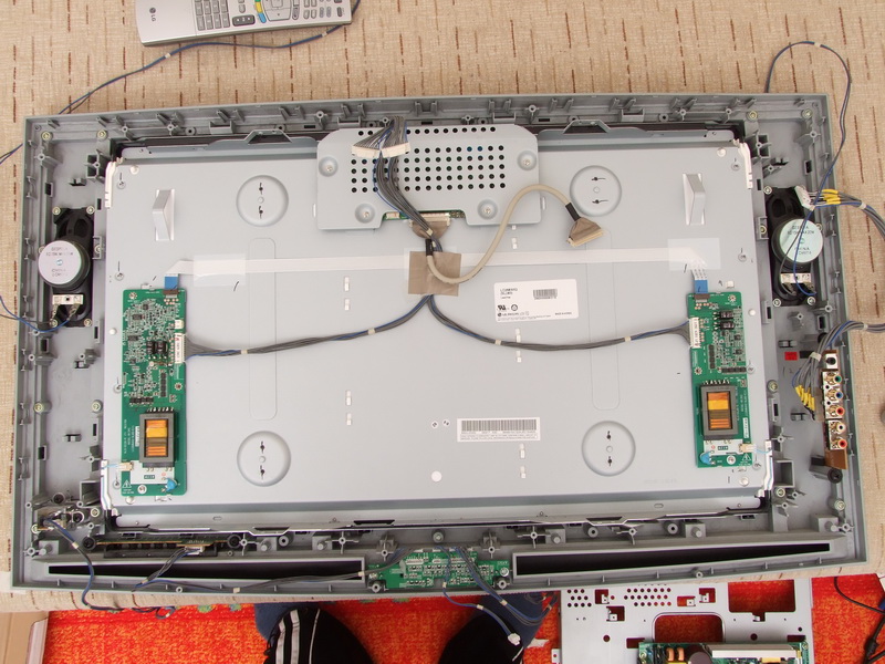 Tak už tu pixlu mám doma Laughing Po povolení asi 100 šroubků jsem se dostal k panelu a je tam LG Philips LC260WX2. Měniče jsou tam 2 a to na boku panelu. Jsou propojeny paskovym kabelem a ještě z každýho vede do řídící DPS TV 12ti žilovej kabel. Docela jsem čučel že z toho měniče je výstup jen jeden silnější VN kabel. Myslel jsem že to bude jako u LCD monitorů k PC že tam bude hafo měničů na DPS a na to připojený všechny zářivky. Po prvním proměření je špatná 4A pojistka v jednom měniči. Další můj poznatek je že TV nebyla rozebíraná. Všechny ty elektricky vodivý lepící pásky byly nepřerušený. Mno jdu kutit dál . . .
