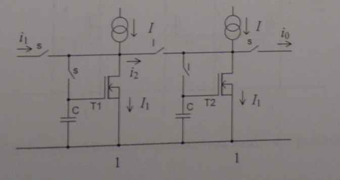 Druhá fáze: Spínače "s" se rozepnou, spínače "l" se sepnou. Kondenzátor u T1 zůstane nabitý z fáze 1, takže přes T1 stále teče proud I1=I+i1(nT). Do i2 teče ta část I, která neodteče přes T1, tj. i2(nT)=I-I1=I-(I+i1(nT))=-i1(nT). Podle tohoto proudu se obdobně nabije kondenzátor u T2, aby přes T2 teklo I2=I+i2(nT). Tam je chyba na obrázku - ten proud u T2 má být I2 a ne I1.