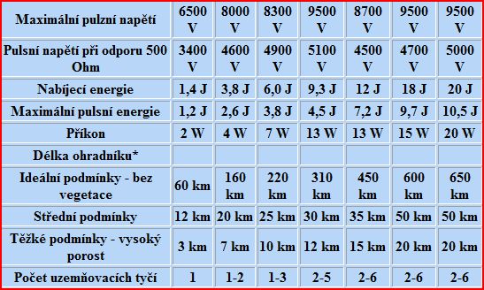 Podle této zabulky by to mělo mít něco kolem 9,7J, ale je to jen tabulka.A ta délka ohradníku s * je s vegetací ta se dost liší tak ji tam nezapsali.