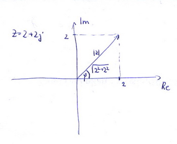 -j.Takže můžeme mít číslo Č= 2+j2 .To určí vektor dlouhý 2.82 s úhlem