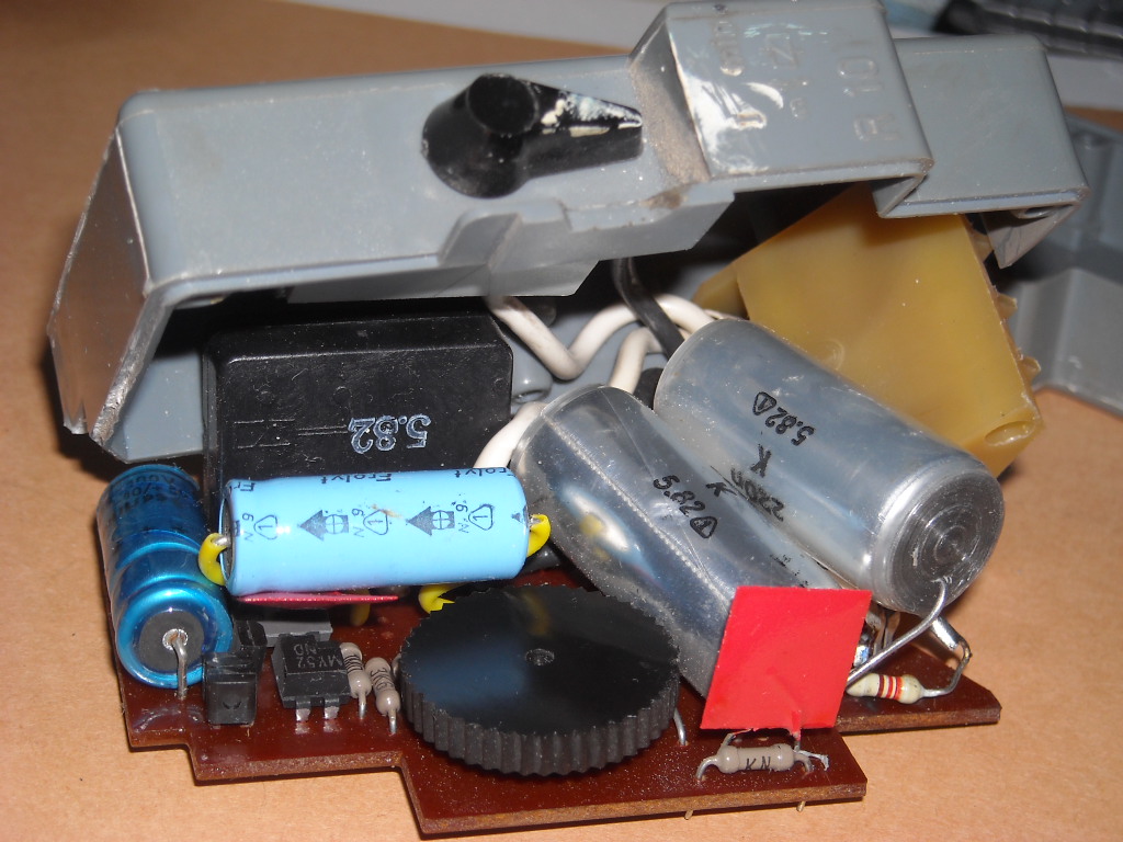 Možná to nakonec skončí v koši, protože vynaložená práce bude neúnosná vzhledem k ceně zařízení. Obdobné ale s triakem se prodává v ceně kolem 240.- Kč za kus. Jen tak naokraj bych chtěl poznamenat jak jsem se hluboce mýlil když jsem chtěl porouchaný spínač nahradit běžným schodišťákem s elektromagnetem a pístem. Nejde to, svítilo to pořád, protože světlo je zapojené tak, že se rozsvítí i bez připojeného zařízení, stačí stlačit tlačítko a po dobu stlačení to svítí.