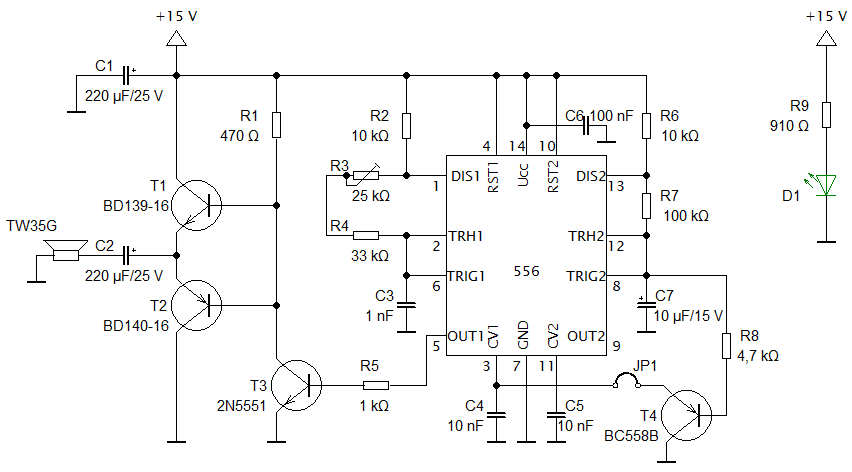 Přes víkend jsem navrhnul toto. Frekvenci si můžeš posadit i nad slyšitelný pásmo, jen netuším, jak to bude na ptáky působit. Já to plánuju na kunu, v jiným threadu jsem řešil ten TW35G. Nicméně psi to uslyší taky. Nepříjemný je to dost.
