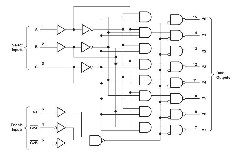 Nad poradím A,B,C a Y0,....Y7 som neuvažoval ako to optimálne napojiť na RA0,1,6,7 a T1,....T8