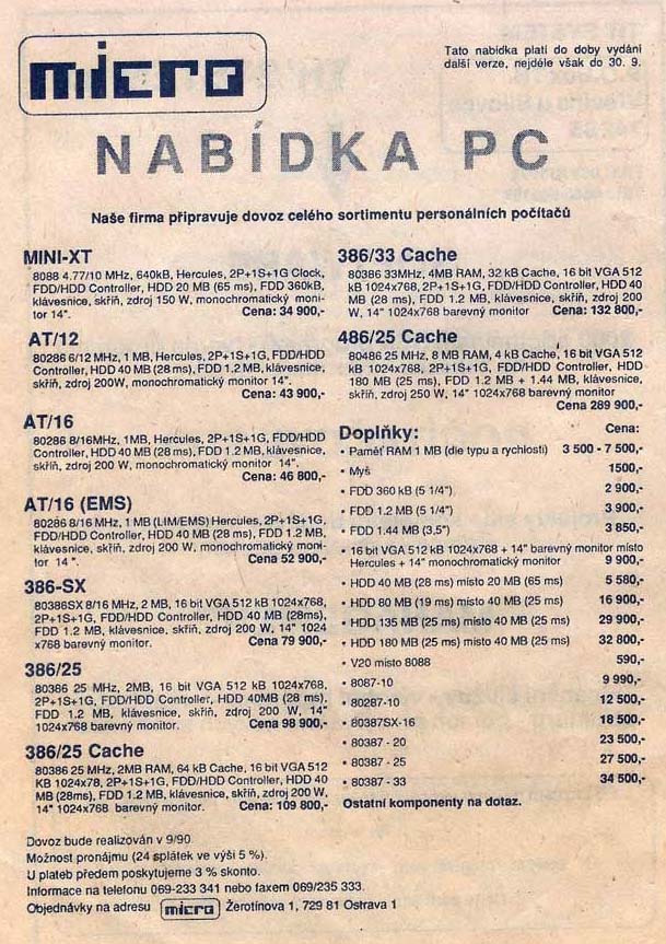 počítač 25 MHz, 16 MB RAM, 160 MB HDD, monitor za 137 390 Kčs.