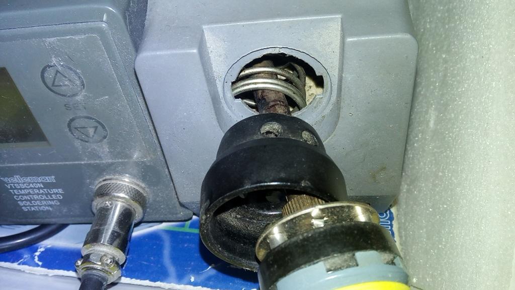 Hrot není moc kvalitní, ta žlutá guma na plastu pera nedrží a sklouzává, kryt je plastový - není odolný proti náhodnému dotyku zahřátým hrotem - a to včetně držáku pera (ve kterém se mimochodem uvolňuje pružina, uchycená jen jedním vrutem, takže teď visí na drátku) a šuplíku pro houbu. Ta akorát měla plechovou "vaničku". Když jsem viděl vnitřek toho zmíněného konektoru, bylo mi z těch pájených spojů zle Confused