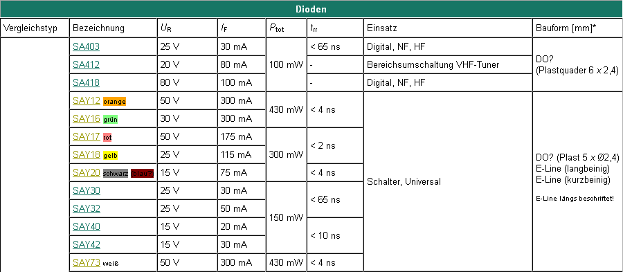 Obávám se, že barva přiřazená byla, ale nenašel jsem tam sken stránky s tabulkou barev pro označení diod, o ostatních polovodičích nemluvě. A Raupenhaus přestal existovat dřív, než jsem si stačil všechny úplné katalogy stáhnout (nanapadlo, mě, že ve věci autorských práv k historickým kouskům bude někdo tak akční).