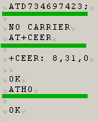 Situace 2/ ATD vytáčí číslo xxxxxxxxx. Modem vrací NO CARRIER. AT+CEER vrací kód chyby