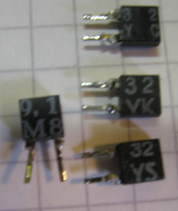 Součástky z produkce DDR. To dvoupackové je dioda, podobná těm jako jsou tady. Je to celkem bezcenná součástka a bez nějaké jistoty jejích parametrů, je to tak akorát vyhodit.. (protože v každým vraku ze SD najdeš lepší).