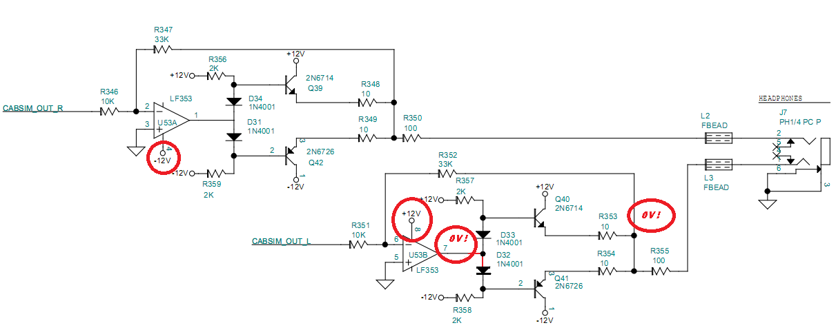 jaké napětí je na odporech R348, R349 a R353, R354 ?