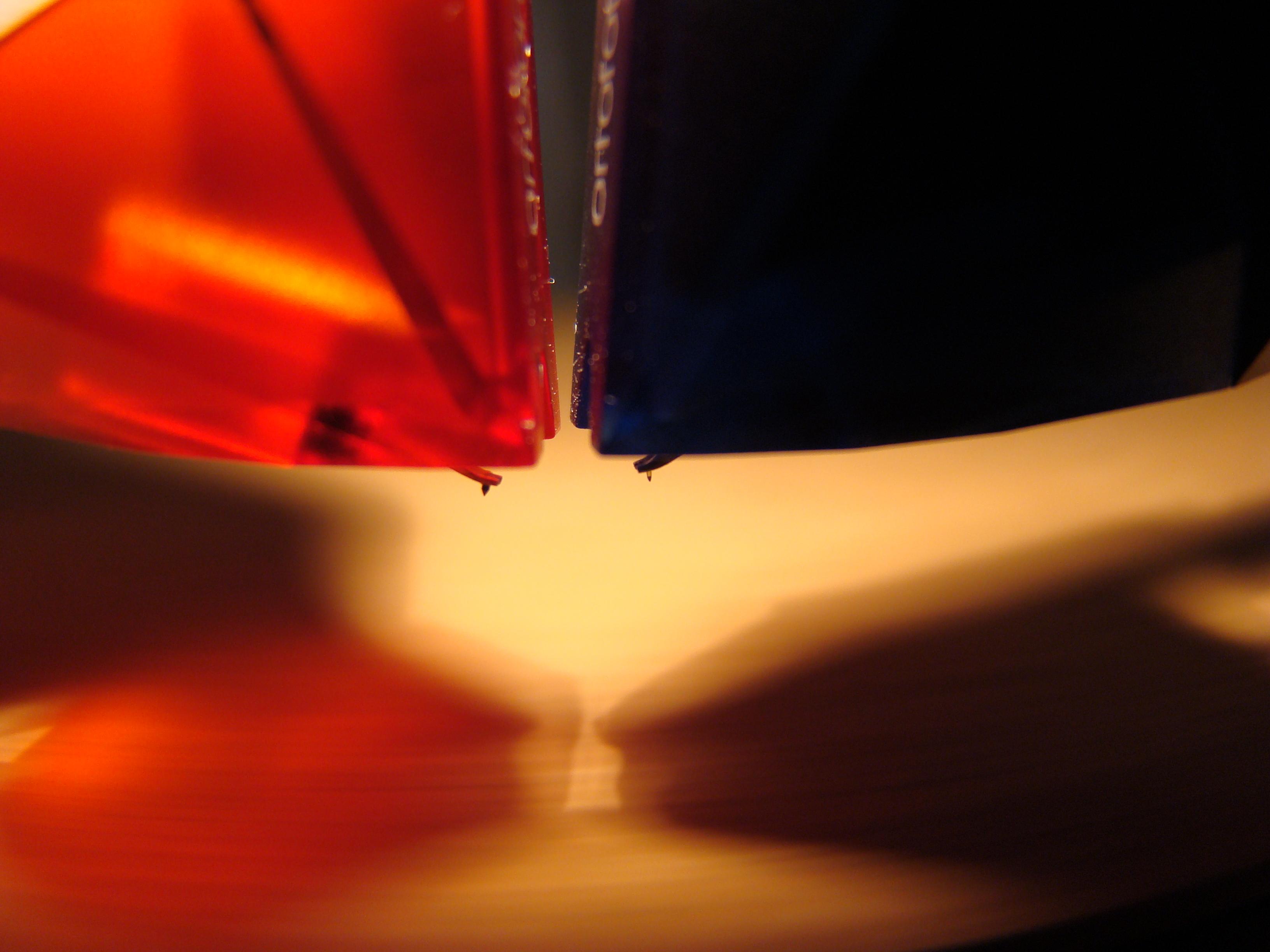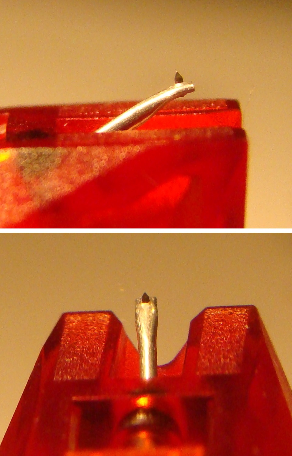 Dneska mi přišla očekávaná jehla. Prosím Vás o kontrolu nastavení přenosky. Měl bych nastavovat přenosku spíše dopředu a nebo vzáději ( a tím zkracovat vzdálenost )? Hrot vypadá úplně jinak. Hraje to výborně. Hlavně když můžu porovnávat, to co jsem nahrál s redkou...