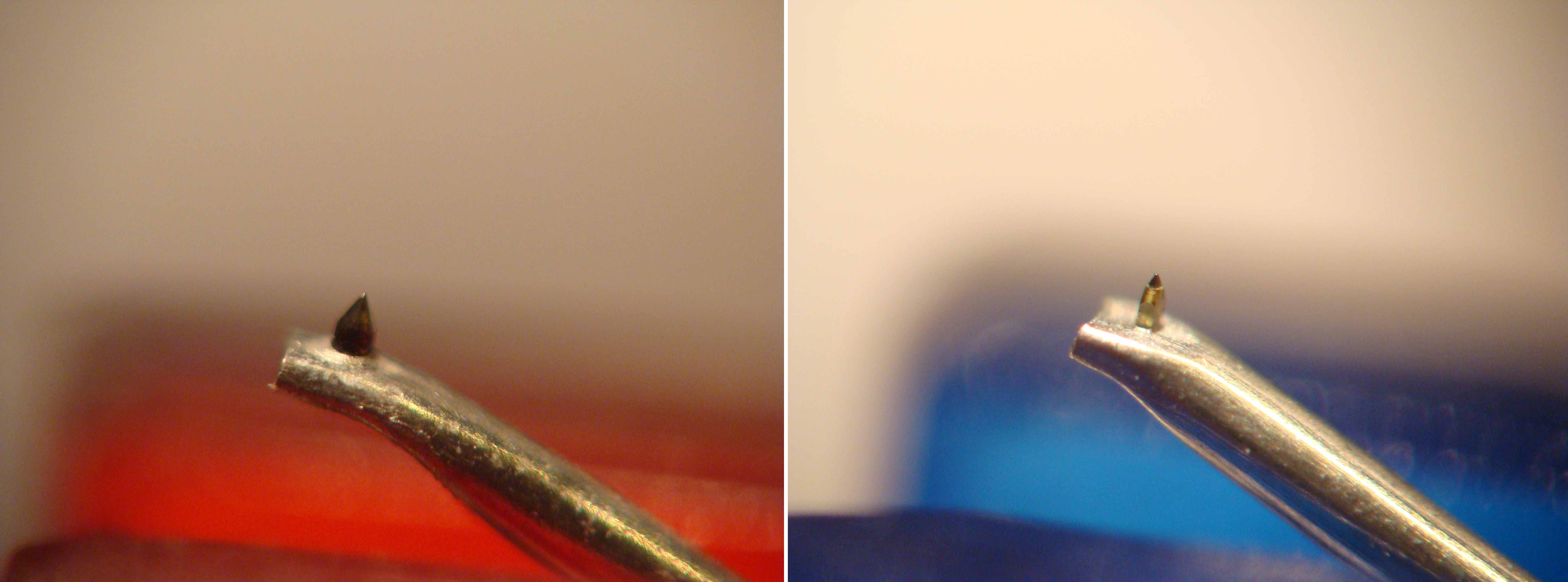 Dnes jsem dostal hroty po ultrazvuku. Vypadají úplně jinak. Mám z toho trochu divný pocit, že objednávku nového hrotu bude potřeba zrušit. Nahrávám fotografie zatím z foťáku. Zítra i z mikroskopu.