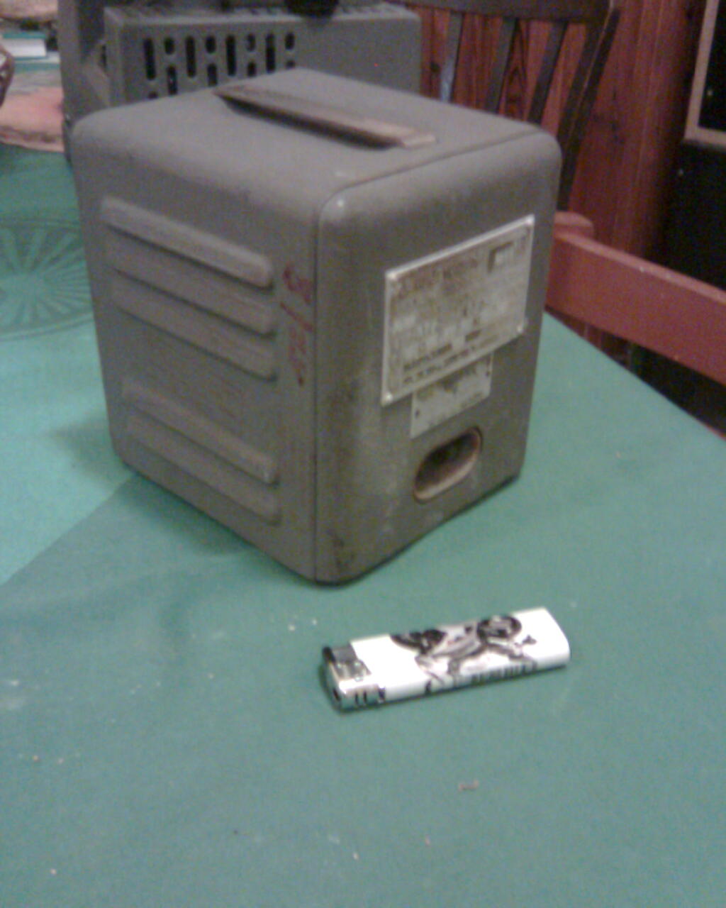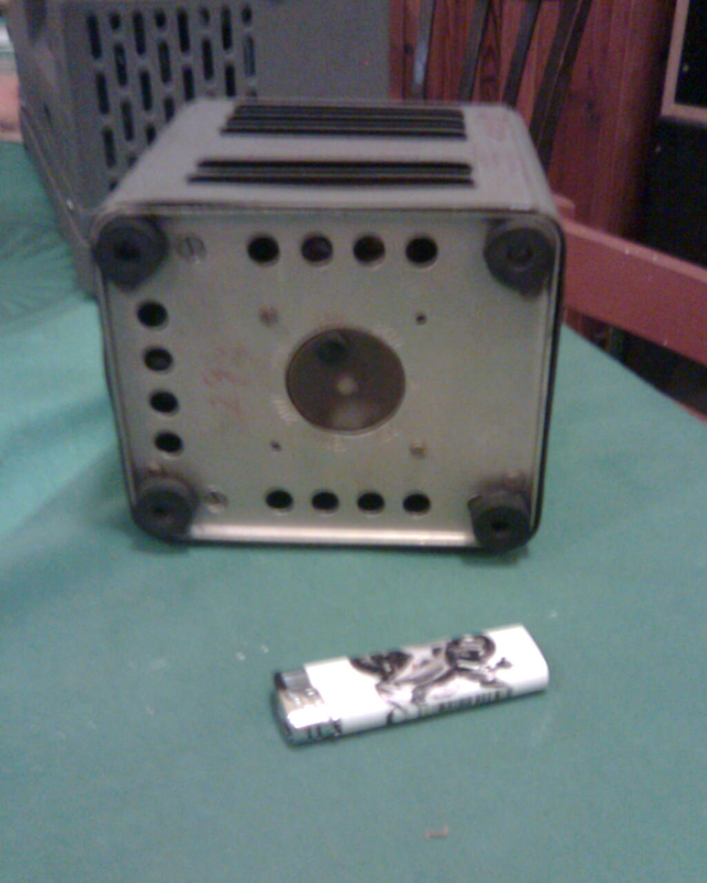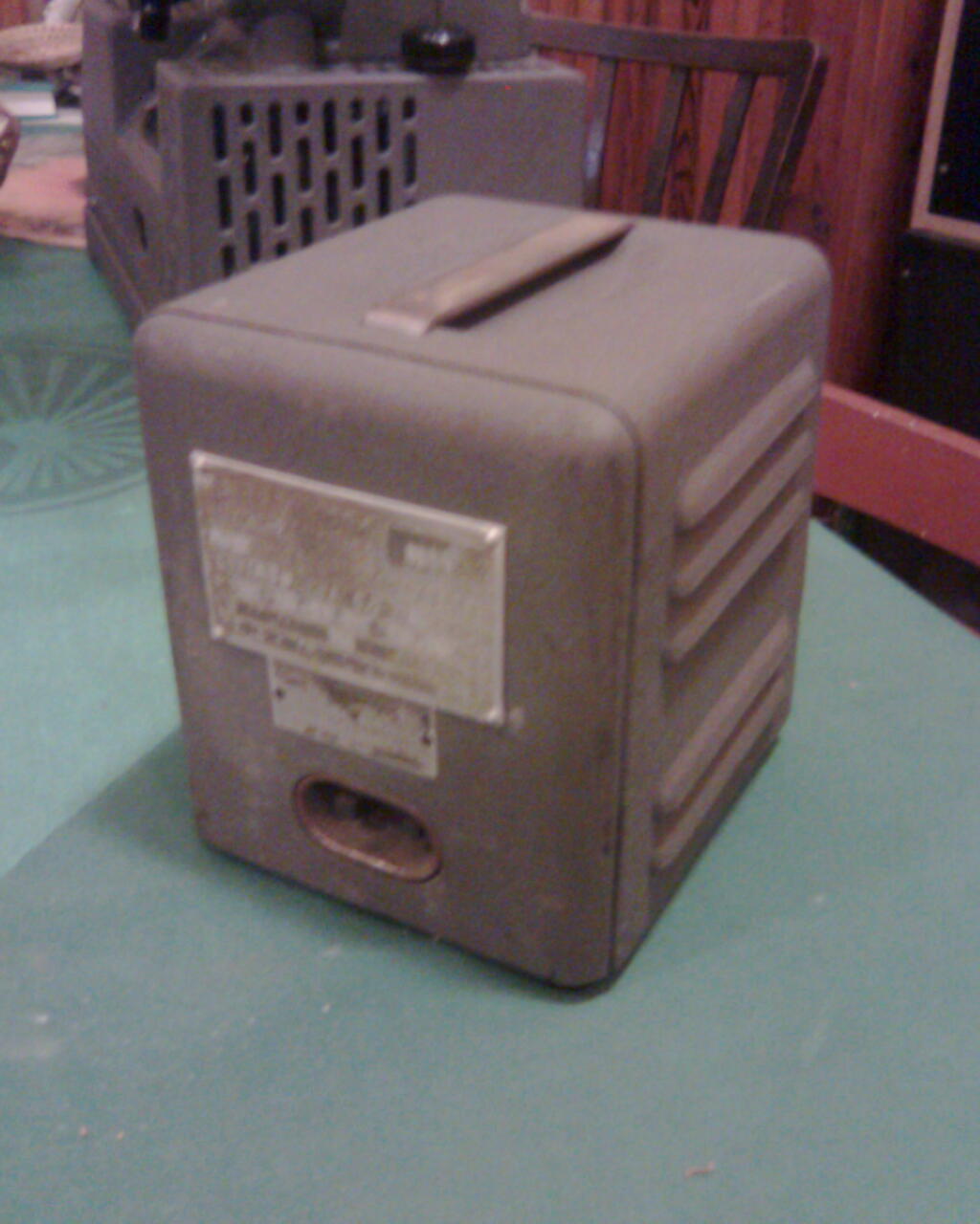 Originální trafo je v plechové skříni s průduchy pro chlazení a s madlem pro přenášení . Přívod 220 V je stará přístrojová zásuvka (jako k žehličkám , či k remosce) , vývod 120 V je kulatá tříkolíková zásuvka . Vespod je přepínač odboček primárního vinutí . Vzhled tohoto trafa není podstatný , novější (podle typu přístroje ) byly i větší a silnější . Podstatné je napětí sekundáru !
