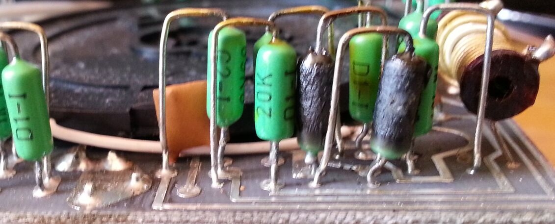 Jsou tam spálený dva rezistory TR161, jejichž hodnoty nemohu určit (jsou na uhel), jsou nejspíš zapojený paralelně. Ve schématu by to mohly být hodnoty 18R2 a 17R8 (R12 a R12a), ale nejsem si vůbec jistý. Jestli někdo doma máte PU500, mrkněte se mi prosím na ty dvě hodnoty, děkuji.