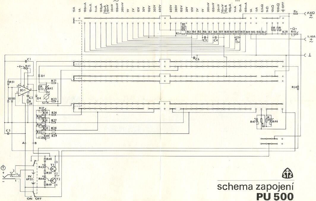 Dobrý den, vlastním PU500 (s jedním OZ) a nechce měřit na žádném rozsahu (kromě napětí baterie). Když přepnu na rozsah a zapnu ho, tak ručka klesne ke spodní hranici (nalevo od nuly) a nabourá na doraz, a pak pomalinku stoupá na nulu.