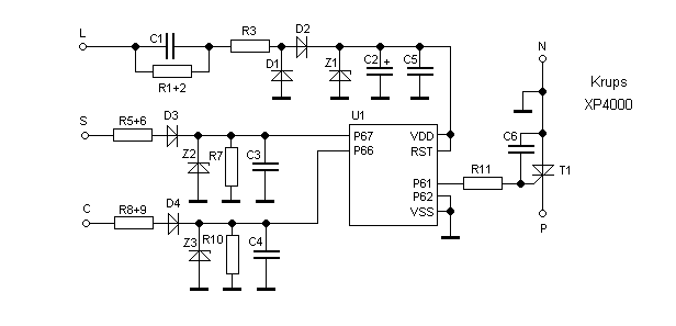 Když se podívač sem, tak jsou ve vrchní části desky pod tím žlutým. Vedou k nim ty dva kabely připájené do desky a celkově jsou tam ty odpory 4 - sráží se na nich napětí 230V (z předního přepínače) na logické úrovně (schéma někde tady najdeš) a občas se některý odpor napěťovým namáháním přeruší - presso to pak bere jako zapnutý program (v tomto případě dávkování páry).