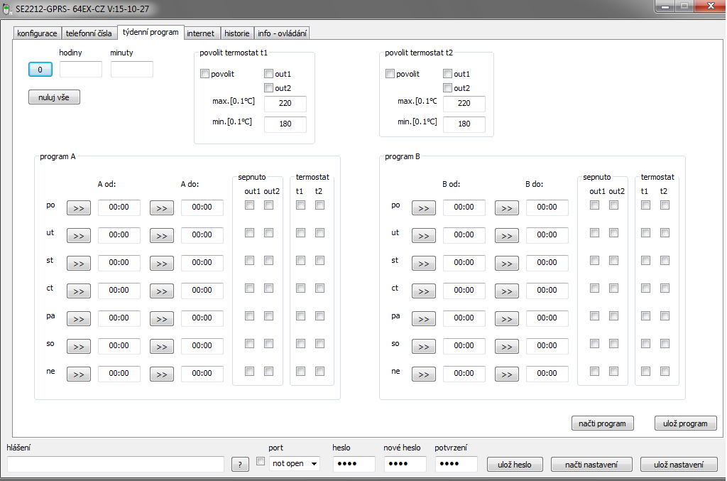 Nedávno jsem našel GSM komunikátor SE2212X. Dva výstupy, dva digitální vstupy, 1x analogový vstup, 2x vstup na teplotní čidlo Dallas DS18B20. Týdenní programovatelný termostat, konfigurace přes USB nebo dálkově přes GPRS. Za 15 stovek docela dobrý...
