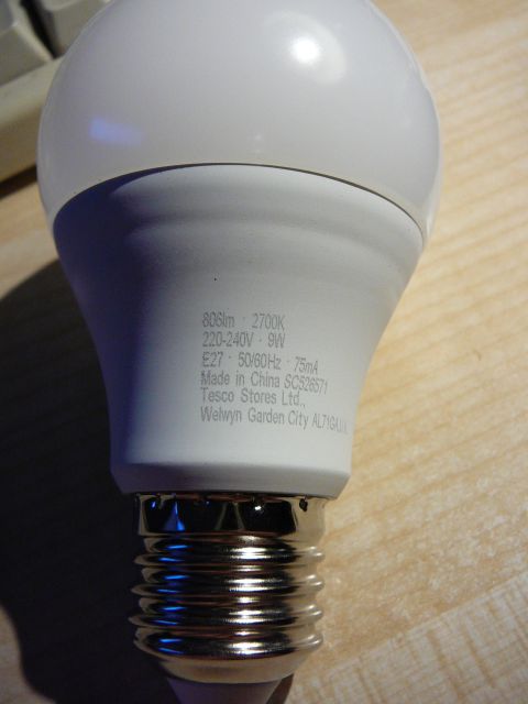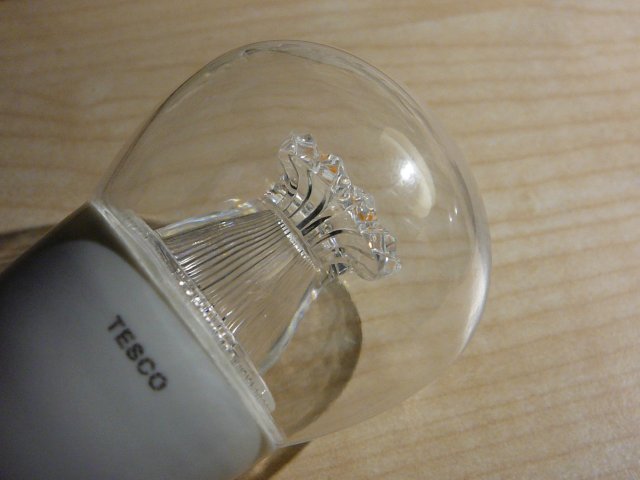 V Tescu teď mají akci 1+1 zdarma na LEDovky. Mají tam zajímavé provedení, LED nesvítí přímo, ale přes světlovod, který velmi věrně imituje svit vlákna v klasické žárovce. Možná to je běžná věc a já jen zaspala dobu, ale ještě jsem se s tím nestkala, jen s různými "kukuřicemi" na 100 způsobů. Už jsem si koupila dvě "svíčky" 5,5W s E14 za 65,90 Kč a dvě klasické baňky s E27 taktéž 5,5W za 65,90 Kč. Nedělám si iluze o nějaké velké trvanlivosti, ale ta vyzařovací charakteristika mě fakt nadchla. Svítí ta korunka na konci světlovodu. LEDovkama na fotce jsem nahradila v kuchyni 40W bodovky a svítí srovnatelně, ne-li lépe. Barevná teplota také odpovídá uváděným 2700K. Neber to, za 33 Kč Smile