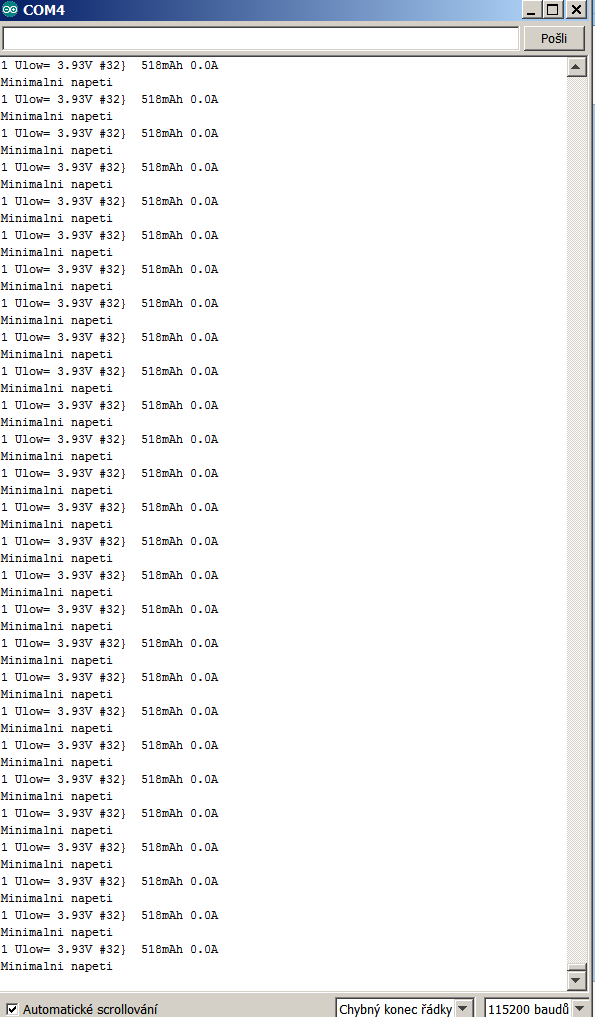 v tom výpisu je vlastně dvouřádkovej výpis telemetrí. Za 1 je první řádek, za 2 je druhý řádek. Pak tam je zkušební rozeznání hlášky Ulow.