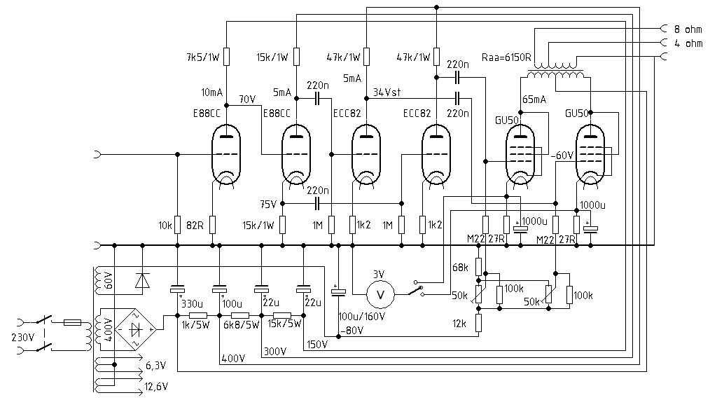 GU50 snese leccos mimo katalog. údaje, nebál bych se jí šoupnout i těch 400V na druhou mřížku,pokud nebude překročená její maximální výkonová ztráta. Běžně jí na zahraničním fóru diyaudio zapojují jako triodu na těch 400V. Otázka je, jak moc se to projeví na životnosti elektronky.