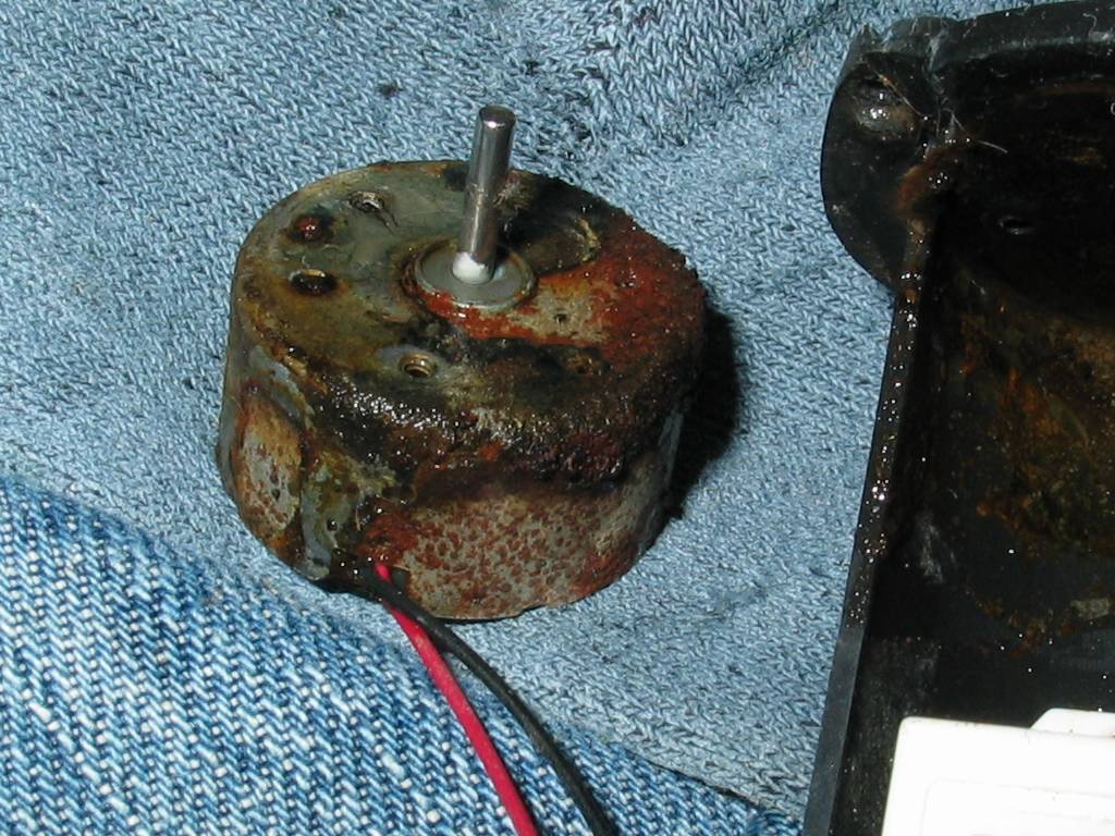 Inak do motora som nastriekal "kontakt 60", s miernym nasilim sa mi kliestami podarilo pohnut oskou a trochu to rozhybat. Potom som ho pripojil na 12V a rukou tocil oskou - nebral ziadny prud, len v jednom mieste - a vtedy mal tendenciu sa rozbehnut. Po chvili hrania sa zacal neochotne tocit, tak som ho nechal bezat a potom uz fungoval normalne.