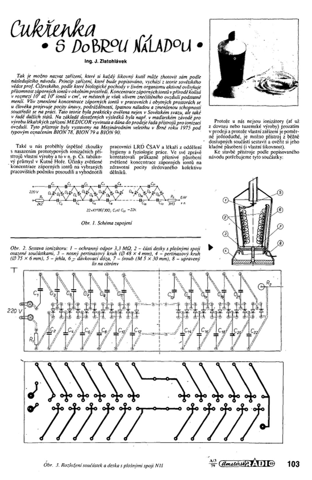 Vláďo, na tu cukřenku se pamatuju, ale vyšla v době, kdy já ještě AR pravidelně neodebíral. Našel jsem ji až když jsem se dostal ke starým ročníkům AR na CD, kdežto ten ionizátor z KTE mám přímo postavenej a občas ho použiju v kutlochu, když tam mám moc nahuleno z kalafuny ...