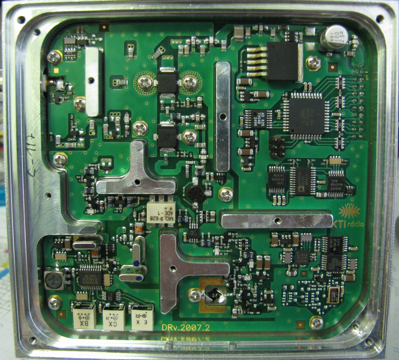 ok1hga: Tady je celkový pohled na zařízení a detail loga výrobce na čipu.