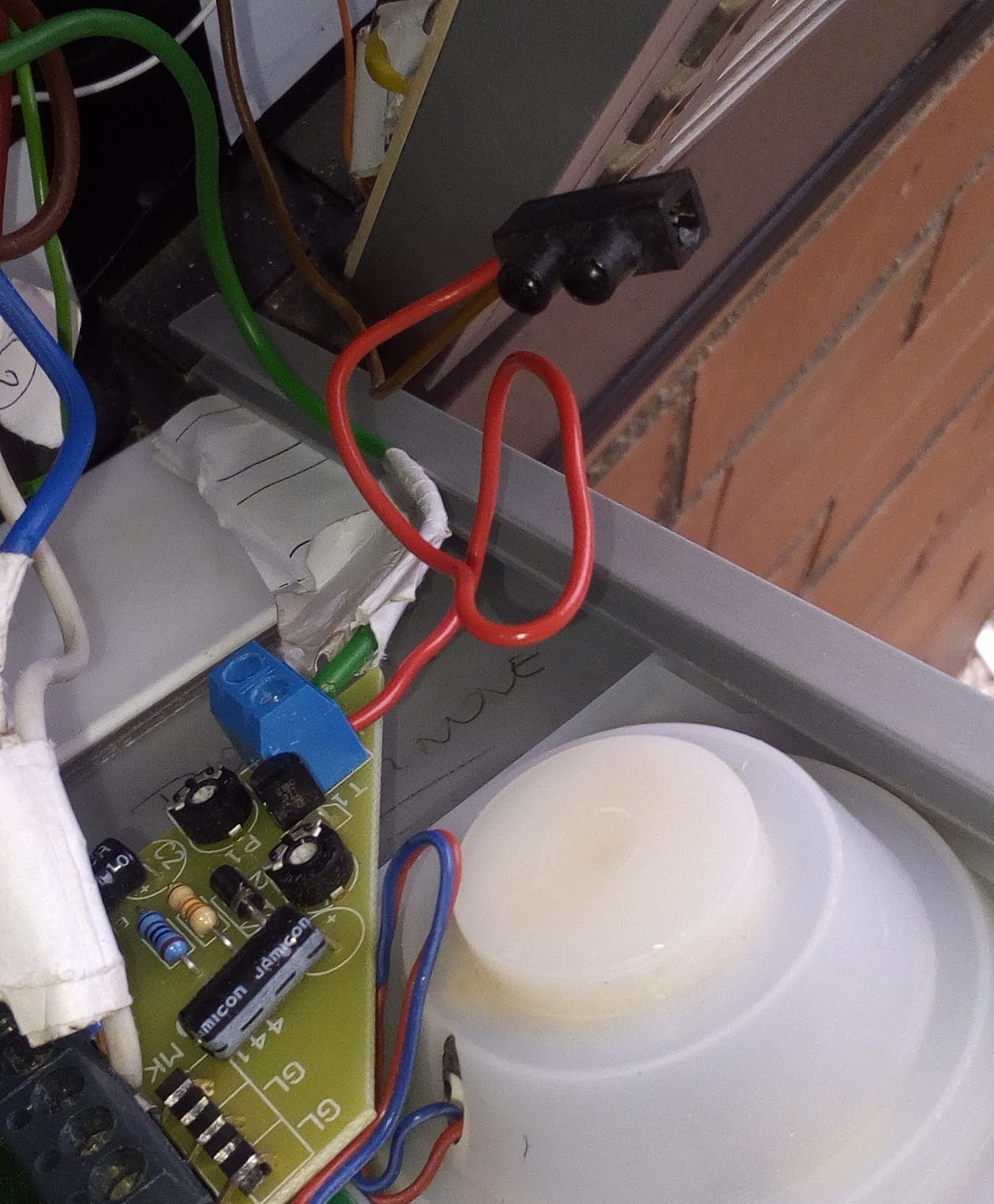 Posílám fotku MIWI zdroje. Ten malý zdroj s diodou je napíchnutý do modré patice s relátkem (viz foto). V úvahu připadá jen to otvírání dveří, žádný jiný elektronický systémy v baráku nemáme.