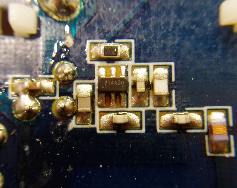 takže ta plechovka s označením ND433A je SAW rezonátor, a brouk je vysokofrekvenčně mrtvej. Na vývodu PAOUT je +Ucc, modulace z tlačitek do vstupu 4 leze, na výstupu se to projeví malým zvlněním Ucc. Na prodlužovací cívce k anténě už úplný ticho.